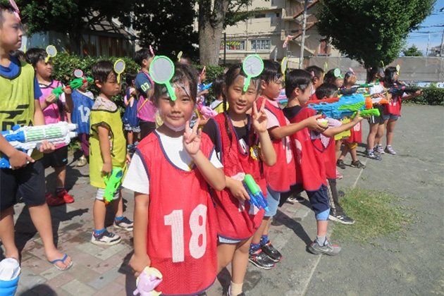 プログラムは、こいのぼり工作や七夕ビーズ、クリスマスのアドベントカレンダーなど季節を感じられる作品作りや、スポーツクラブ、水鉄砲合戦、たこあげ等屋外でも楽しんでいます。