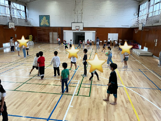 (中)体育館ではドッジボールやバスケットボールなど思いっきり体を動かします。