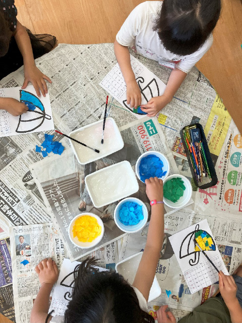 申し込み制の工作はたくさんの参加があります。 身近なもので素敵な作品を作っています。